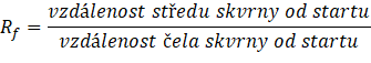 Pigmenty můžeme analyzovat např. s pomocí tzv. retenčního faktoru (též retardační faktor, Rf). Tato veličina je bezrozměrná, nemá tedy žádnou jednotku. Zároveň je nutné si uvědomit, že Rf se vždy vztahuje k dané soustavě, tedy k typu stacionární a mobilní fáze, kterou právě používáme. Retenční faktor spočteme s pomocí následujícího vzorečku6: