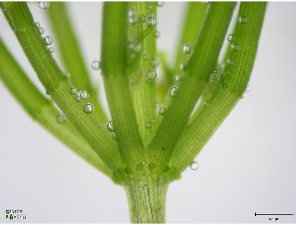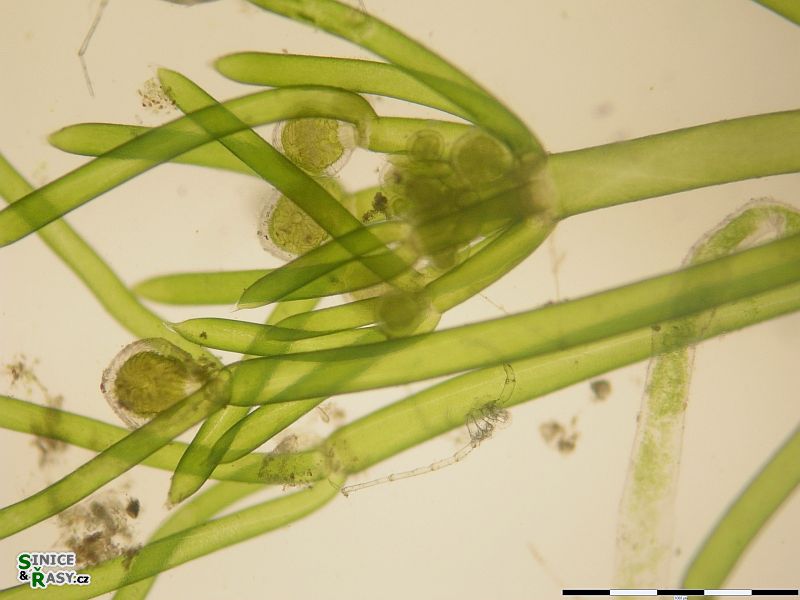 - Chara (parožnatka) – má tzv. korové buňky (a díky nim strukturovaný, drsný stonek) a tzv. stipulární buňky (podpůrné buňky pod přeslenem)