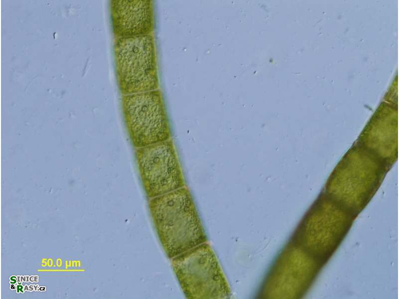 - Pediastrum – typické ploché hvězdovité kolonie; planktonní