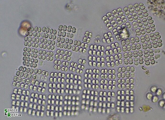 - Merismopedia – kulaté buňky uspořádané v deskovitých koloniích, plankton, metafyton i bentos sladkých vod