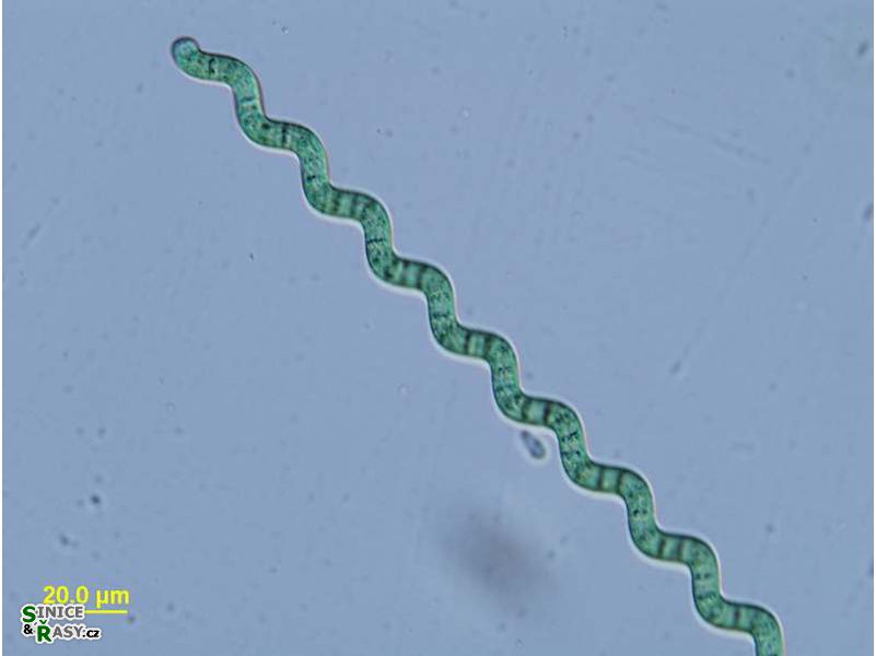 - Limnospira – typicky hustě zatočená vlákna (jako „sinusoidy“), komerčně pěstovaná jako „Spirulina“, hojně využívaná v potravinářství